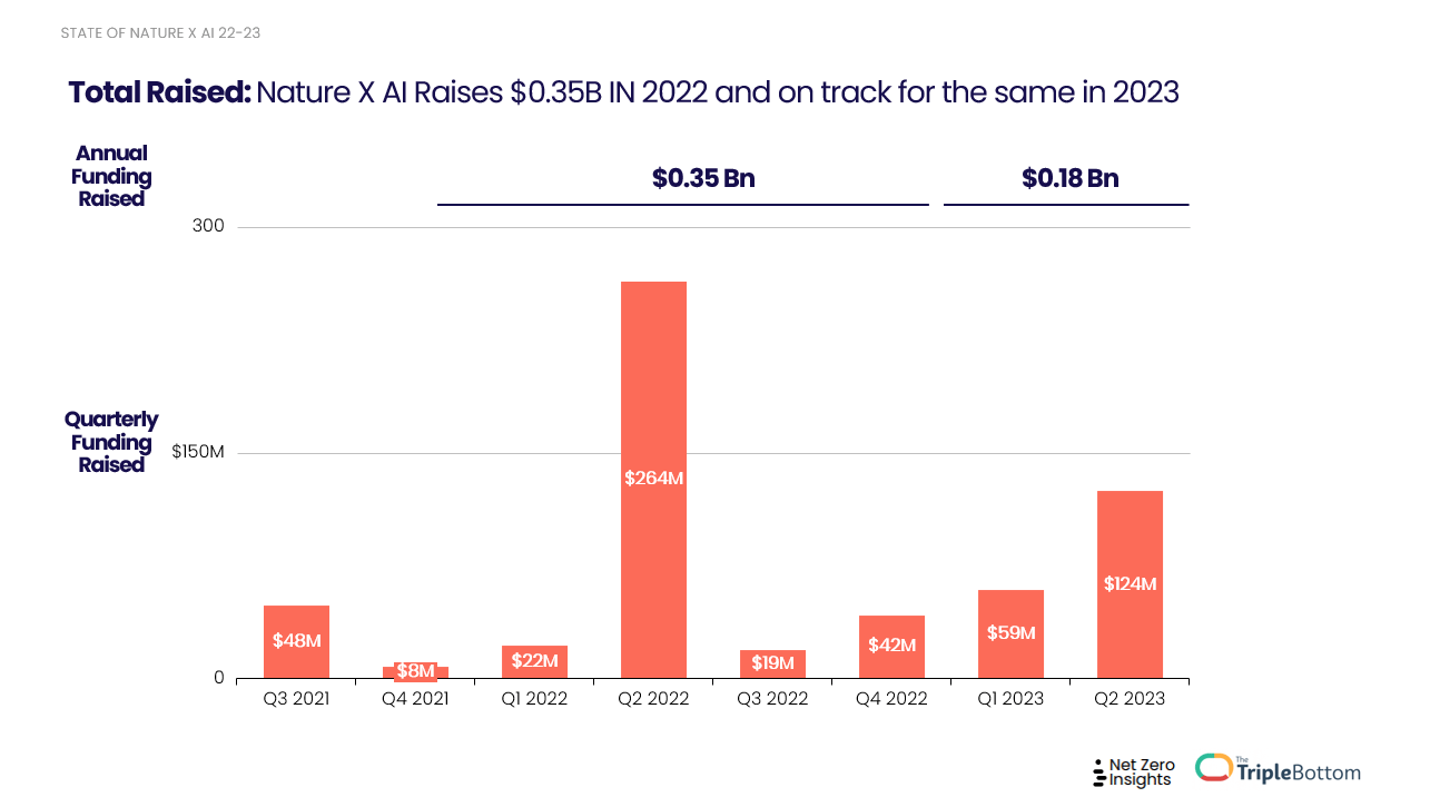 This report includes data extracted from the Net0 Platform regarding capital raised in 2022 & 2023 YTD by startups operating at the intersection of AI and Nature. The following funding round types are considered out of scope in this report: acquisition, IPO, post IPO, merger, PIPE, secondary transaction, and SPAC