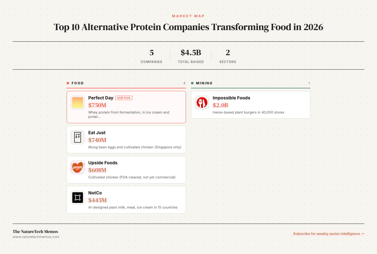 If you're betting on one company, watch Perfect Day. They solved the hardest problem: making money. Their precision fermentation platform produces actual whey protein without cows. It's already in products from Brave Robot ice cream to Modern Kitchen protein powder. They're not promising future breakthroughs. They're shipping 50+ million servings and licensing their technology to CPG giants. While cultivated meat companies burn cash waiting for regulatory miracles, Perfect Day is building a real business.